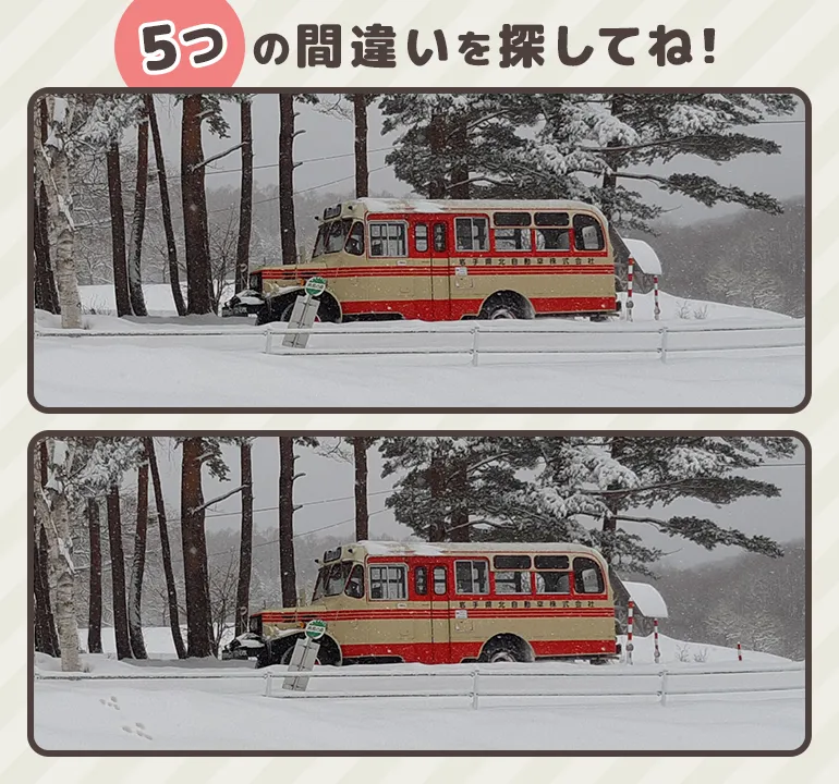 上と下の画像では全部で5つ違う場所がありますよ。探してみよう!