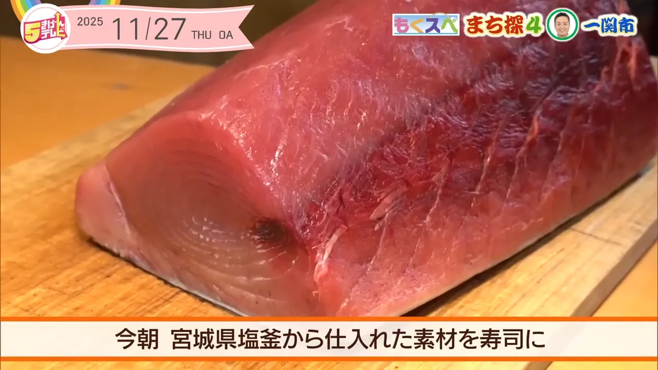 マグロは今朝、宮城県塩釜から仕入れた素材を寿司にしています。