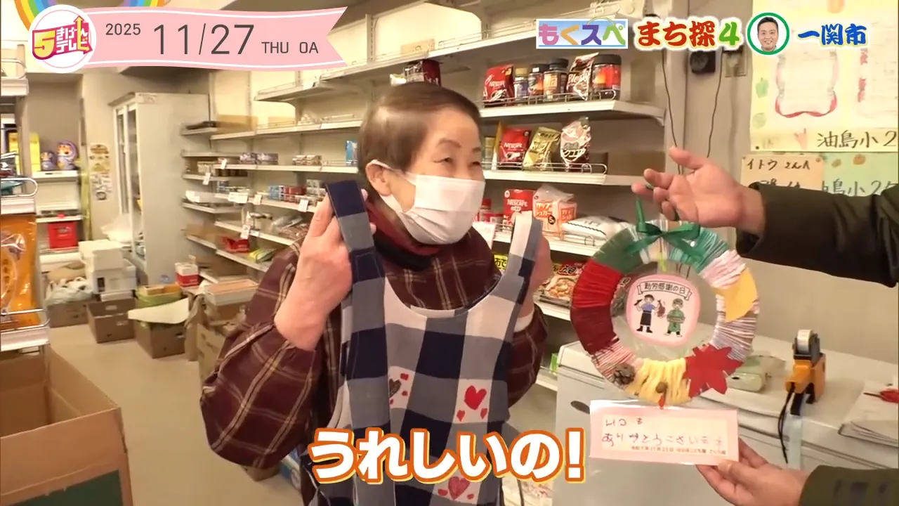 岩瀬アナが来る少し前に近くの子ども園の子どもたちがお店に来ていたようで、店主の伊藤さんにエプロンをプレゼントしたそう!