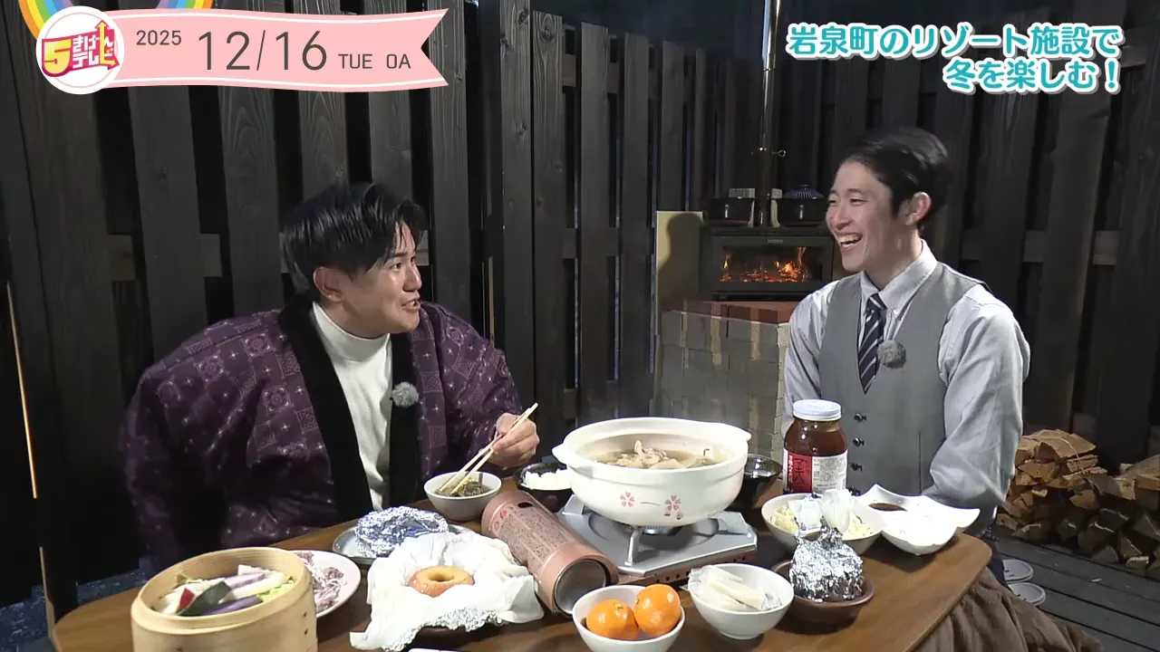 林アナ「日も傾いてきて雪もちらついて素敵な雰囲気ですが、このこたつが暖かい!」