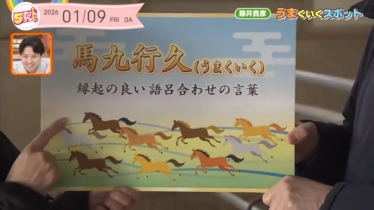 馬が9頭走っている様子を「何事もうまくいく」という縁起のいい語呂合わせになっています!