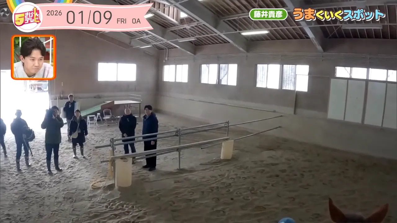 きぬちゃんが乗馬の馬以外にも藤井アナに会ってほしい馬がいるということで外へ。