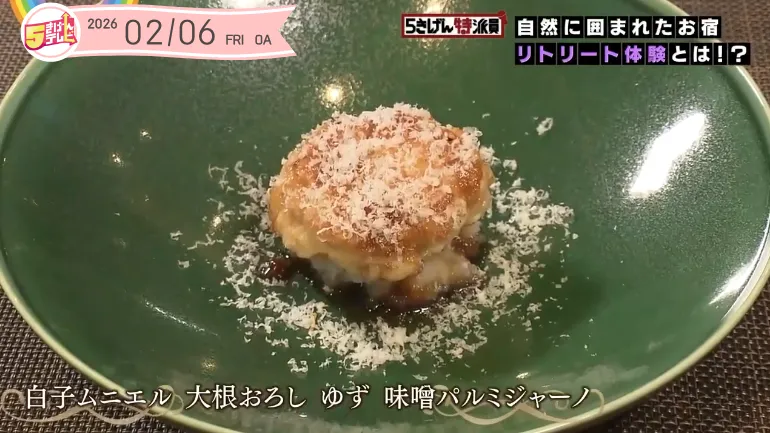 冷たい大根おろしの上に温かい白子のムニエルを乗せ、冬ならではの外の寒さと屋内での暖かさを料理で表現されたそうです。