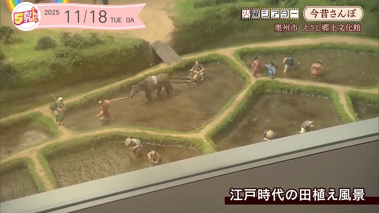 「こちらは江戸時代の田植風景ということなんですが、弥生時代と比べると見た目がかなり違いますね」