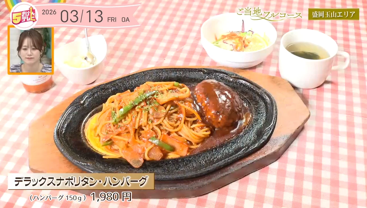 このハンバーグはいわて短角牛を使ったハンバーグなんです。そして、ナポリタンも特製ミートソースで作るさっぱり味のナポリタンです。