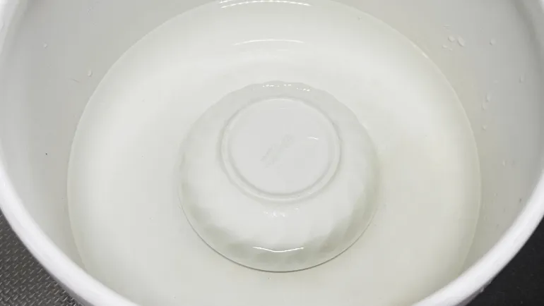 まずは深めの鍋に水を入れ、陶器の小鉢を逆さにして中央に置く。
