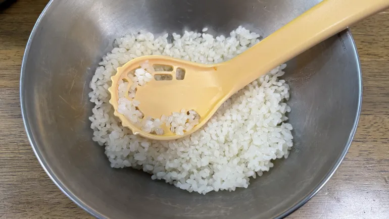 今回のように餅米に芯が残る場合は、この水に浸す時間に原因があることが多いそうだ。