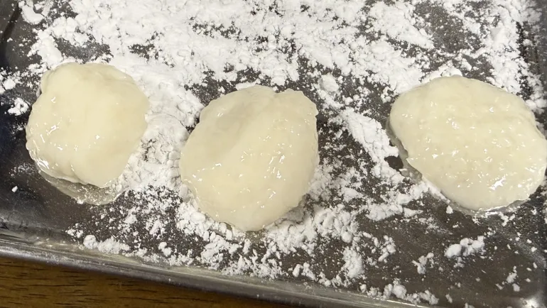 打ち粉(片栗粉)をまぶし、あんこ餅と生姜餅にして食べてみることとした。